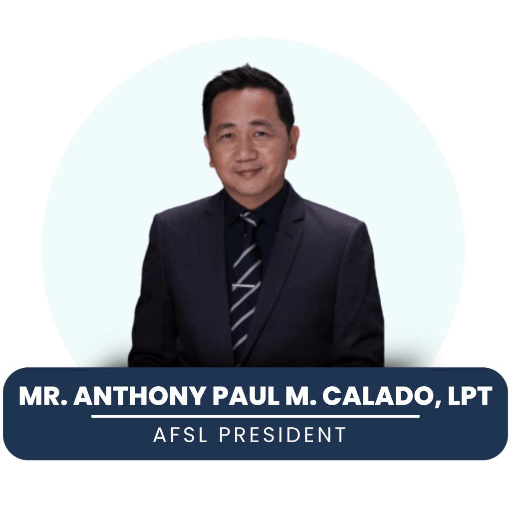 The Board of Trustees of the AFSL appointed Mr. Anthony Paul M. Calado, LPT as the new AFSL President starting Academic Year 2022-2023.