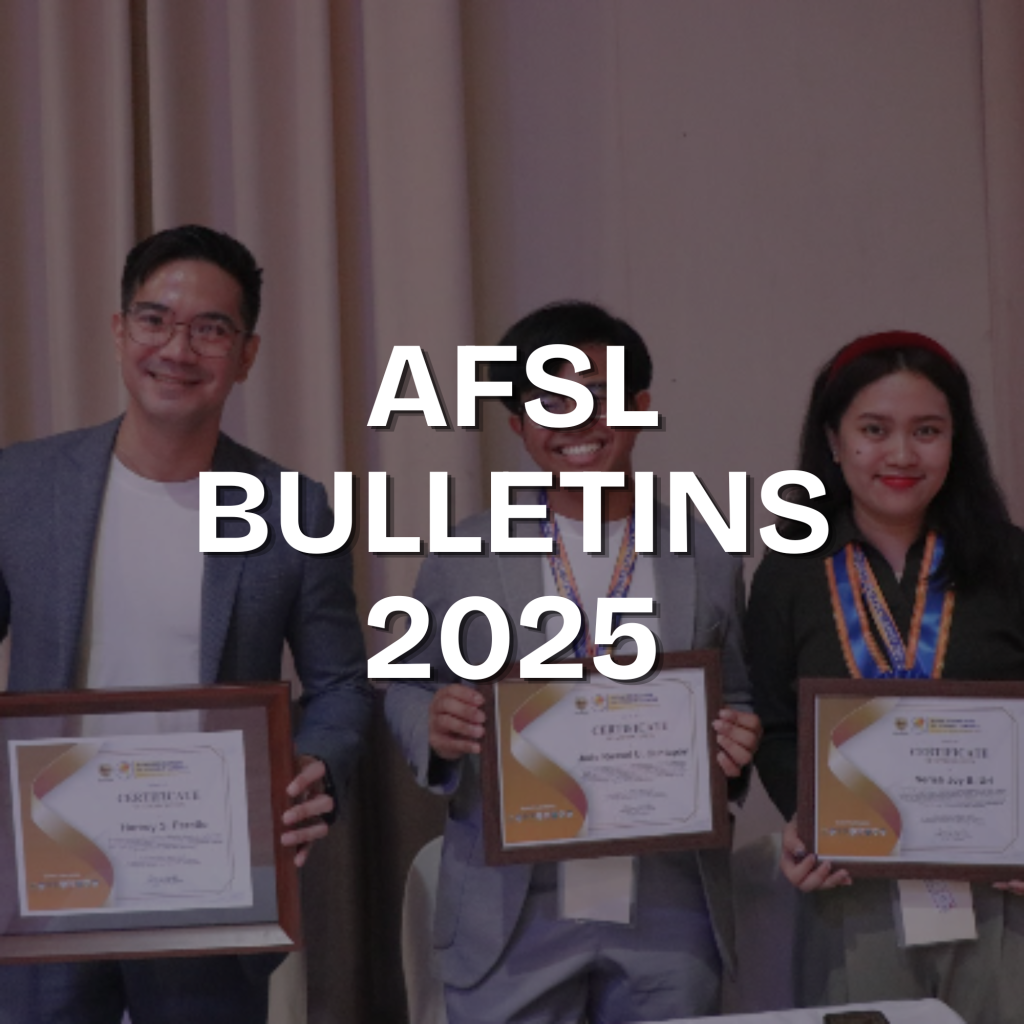 The AFSL Bulletins give you a glimpse into the latest activities, initiatives, and opportunities within the Asian Federation of Student Leaders.